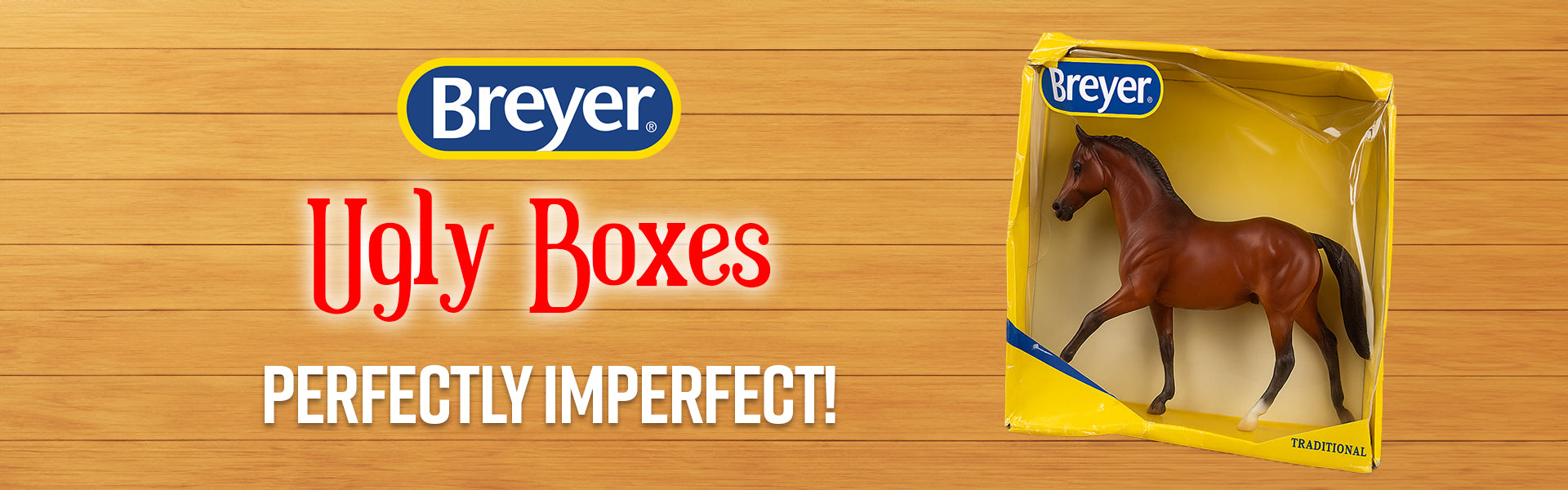 They might not win any NIB beauty contests, but these Breyer models still deserve a loving home! The Ugly Boxes collection is your chance to pick up genuine Breyer models at a great price – each with a little extra character. From squished packaging to quirky factory flaws or one-of-a-kind variations, these horses are 100% Breyer and 100% ready for adventure.